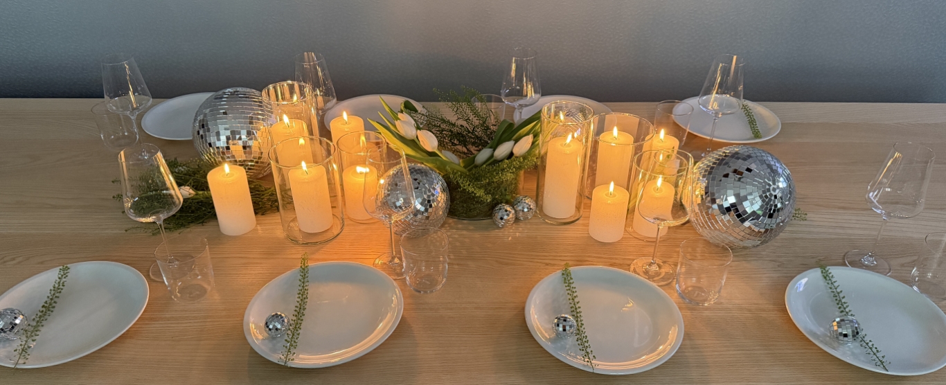 So leicht kann man der Tischdeko mit ein paar Disokugeln ein Upgrade verschaffen